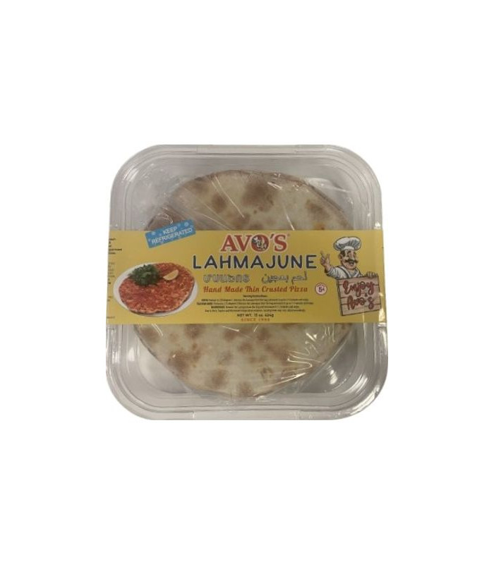 Our Lahmajune Thin Crust Pizza is a traditional Mediterranean flatbread topped with a flavorful mix of ground beef, ripe tomatoes, garlic, red pepper, and a touch of red pepper paste. Baked on a crisp, thin crust, it delivers a perfect balance of spice and savory depth in every bite. Ideal as a snack, appetizer, or quick meal.